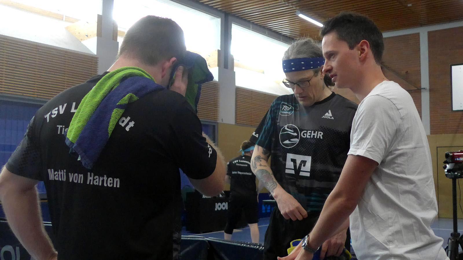 Beide Teams liefen in Bestbesetzung auf und begannen sehr konzentriert. Die Doppel gingen beide in den Entscheidungssatz und waren sehr umkämpft. Elger und ich konnten das Match gegen die sehr sicheren Meder/Kowalski gerade noch drehen, während Anton und Martin das Spiel gegen Cords/Asieiev noch eng abgeben mussten. 1-1.