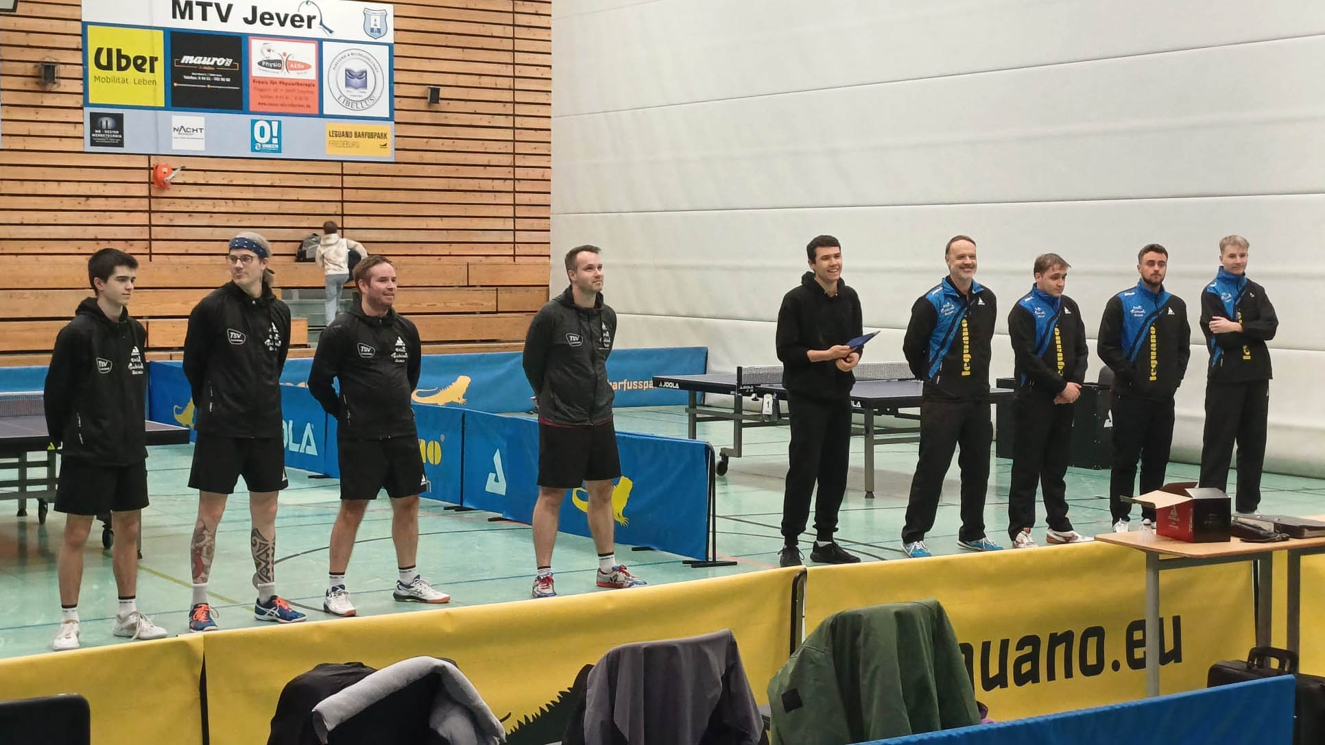 Beide Teams hatten ihr Tafelsilber aufgetischt, sodass alles bereit für ein Topspiel war. Wir spielten zwei gute Doppel, wobei hier der Sieg von Martin und Alex über Miller/Kacerauskas erwähnt werden muss. Elger und ich letztendlich noch souverän. 2-0 vor etwa 50 Zuschauern mit einigen von der Lune.