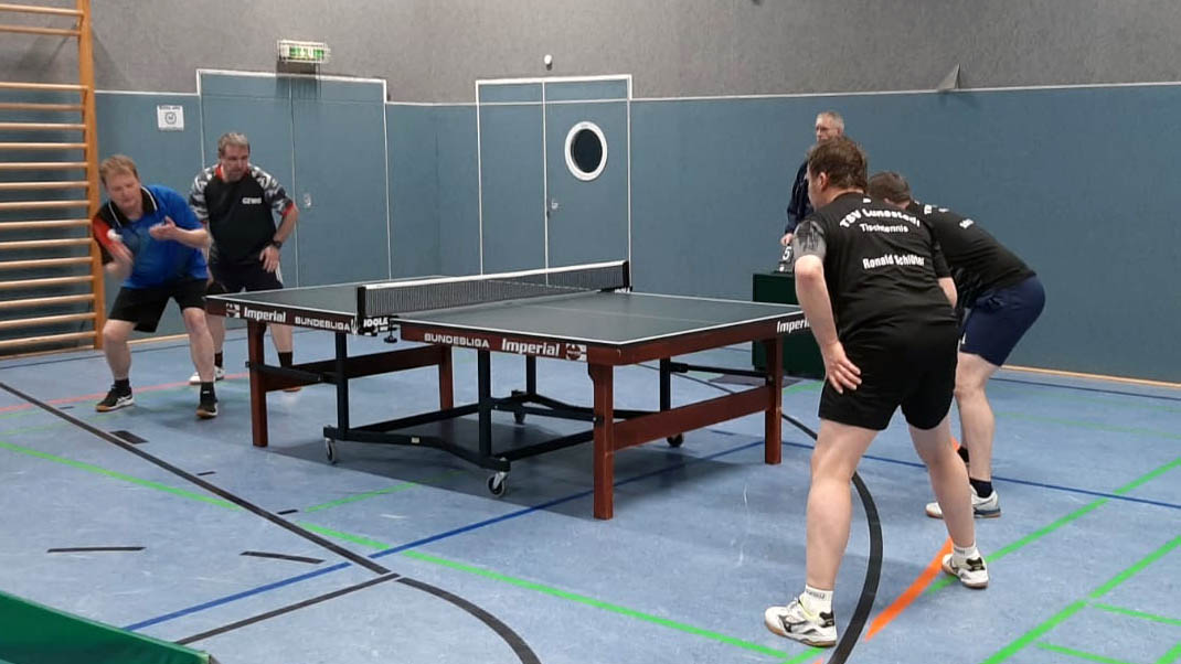 Nach den Doppeln, Rüdiger/André und Ronald/Tobi sei Dank, immerhin eine 2:1 Führung. Im Spitzenpaarkreuz dominierte bei den Gastgebern Thomas Schrader (3:1 gegen Ronald, 3:2 gegen Rüdiger), unsere Mitte baute den Vorsprung auf 5:2 aus, aber die Hollener ließen nicht locker und blieben dran. Gut, dass Tobi beim 8:6 im Entscheidungssatz den Sack dicht machen konnte, obwohl sein Nervenkostüm nicht das beste war und eine sichere 2:0 und 7:2 Führung zunächst auf der Strecke blieb.