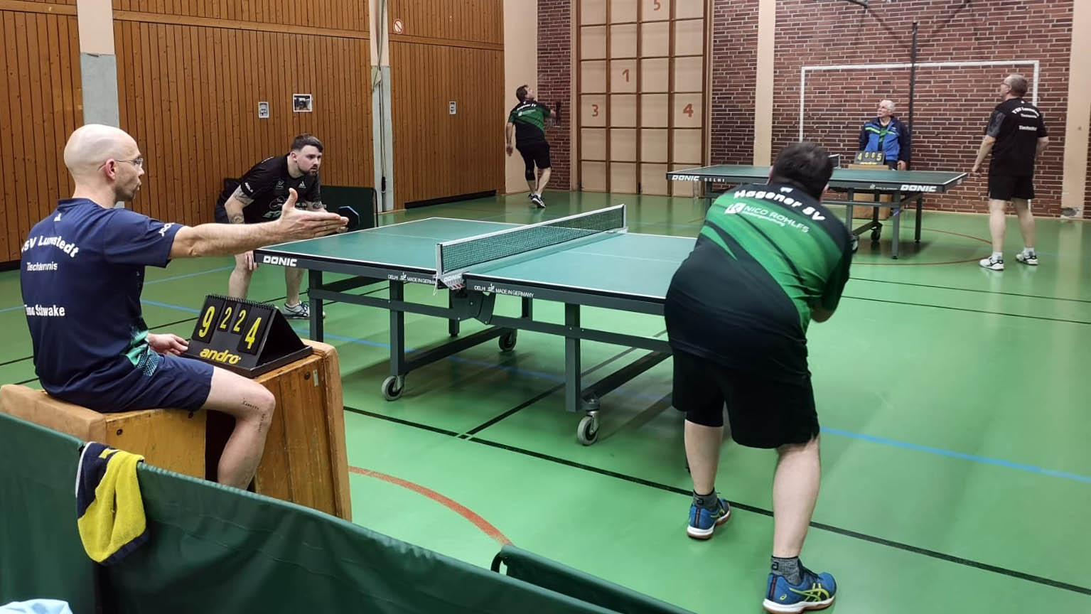 Timo S. musste gegen den stark aufspielenden Volker S. schnell die Segel streichen. Im Spiel gegen Dieter S. wechselte in jedem Satz das Momentum. Schließlich stellte Timo auf ein sehr kontrolliertes und cleveres Spiel um und siegte verdient im fünften Satz. Ganz, ganz wichtig für uns.