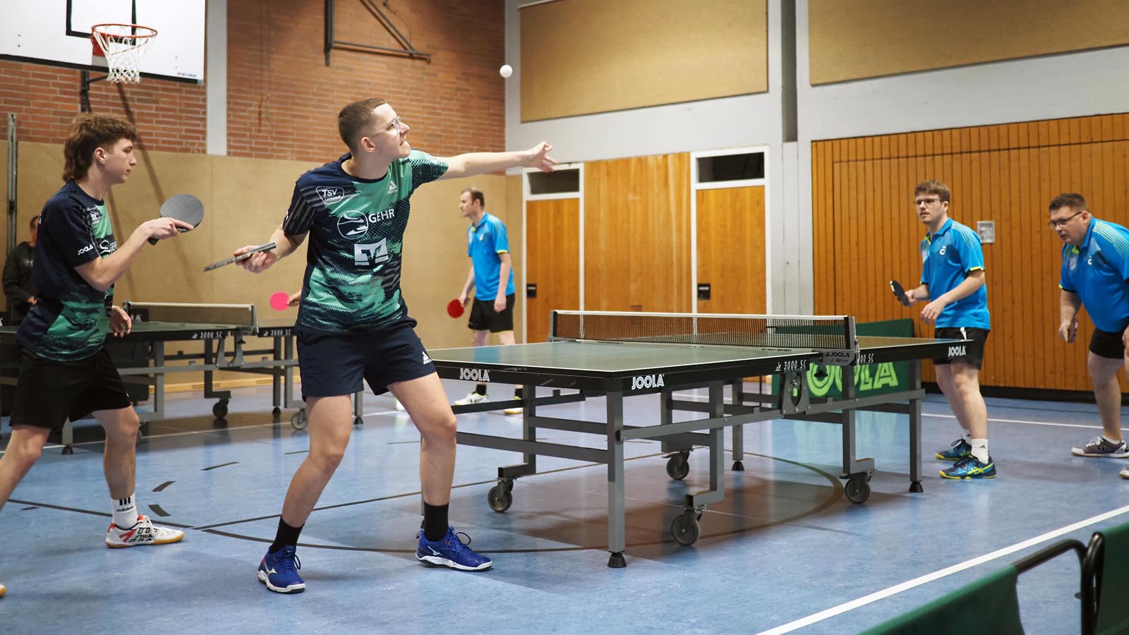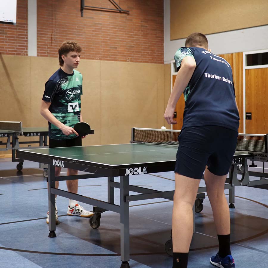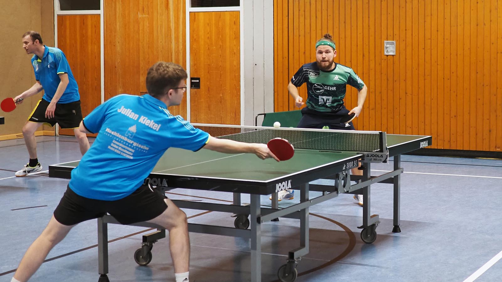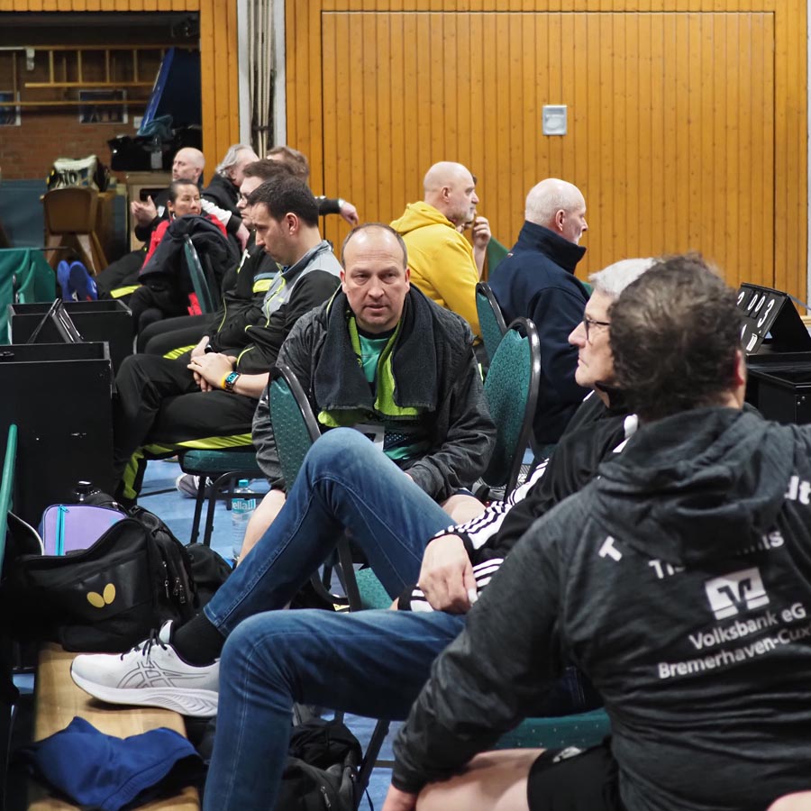 Dass mit diesen jedoch zu rechnen ist, wurde bereits im Doppel klar, als Arne und Tiger gegen Burmester/Schwarz das Nachsehen hatten (1:3). Thorben und Edeljoker Luca hatten gegen das Einserdoppel der Gäste Kiekel/Steffens in der „Crunch-Time“ zu selten das Glück und den kühlen Kopf auf ihrer Seite, weshalb es hier ebenfalls ein 1:3 setzte. Loocki und ich starteten behäbig in die Partie gegen Waldvogel/Schmidt, rissen die Partie nach einem gemopsten ersten Satz jedoch zunehmend an uns und verhinderten den Fehlstart (3:0).