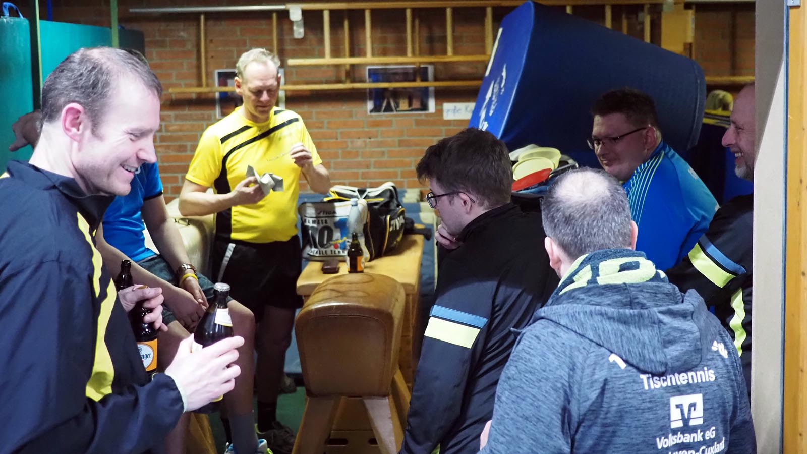 Loocki und meine Wenigkeit setzten im oberen Paarkreuz anschließend mit zwei 3:0-Siegen den Deckel auf die Partie und sicherten unserem jungen Gespann damit zwar keine Rosen, jedoch wichtige Zähler im Kampf um den Klassenerhalt. Nach den obligatorischen Mettfestspielen, inklusive gefeierter vorzeitiger Meisterschaft der gleichzeitig