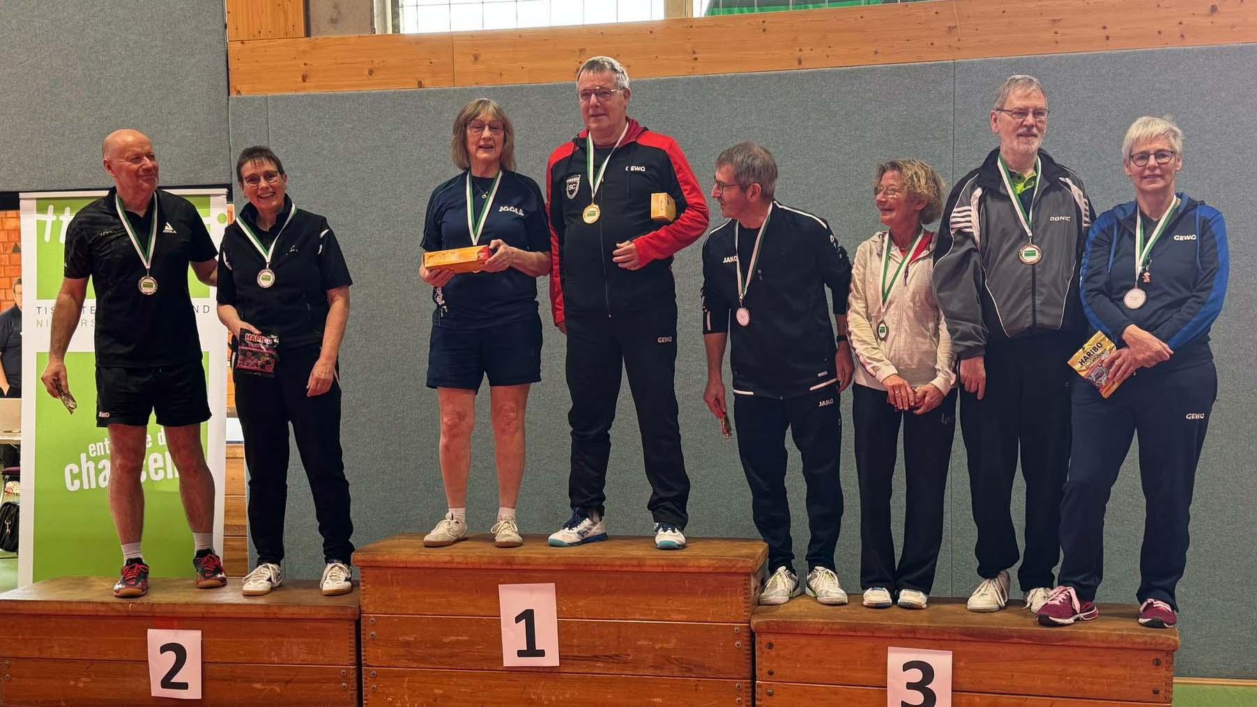 Sportlich gingen immerhin 5 Titel an den TSV. Herausragend einmal mehr Freia, der das Kunststück gelang, alle drei Titel an die Lune zu holen. Des weiteren war Volkmar im Mixed und Ingeborg im Doppel erfolgreich.