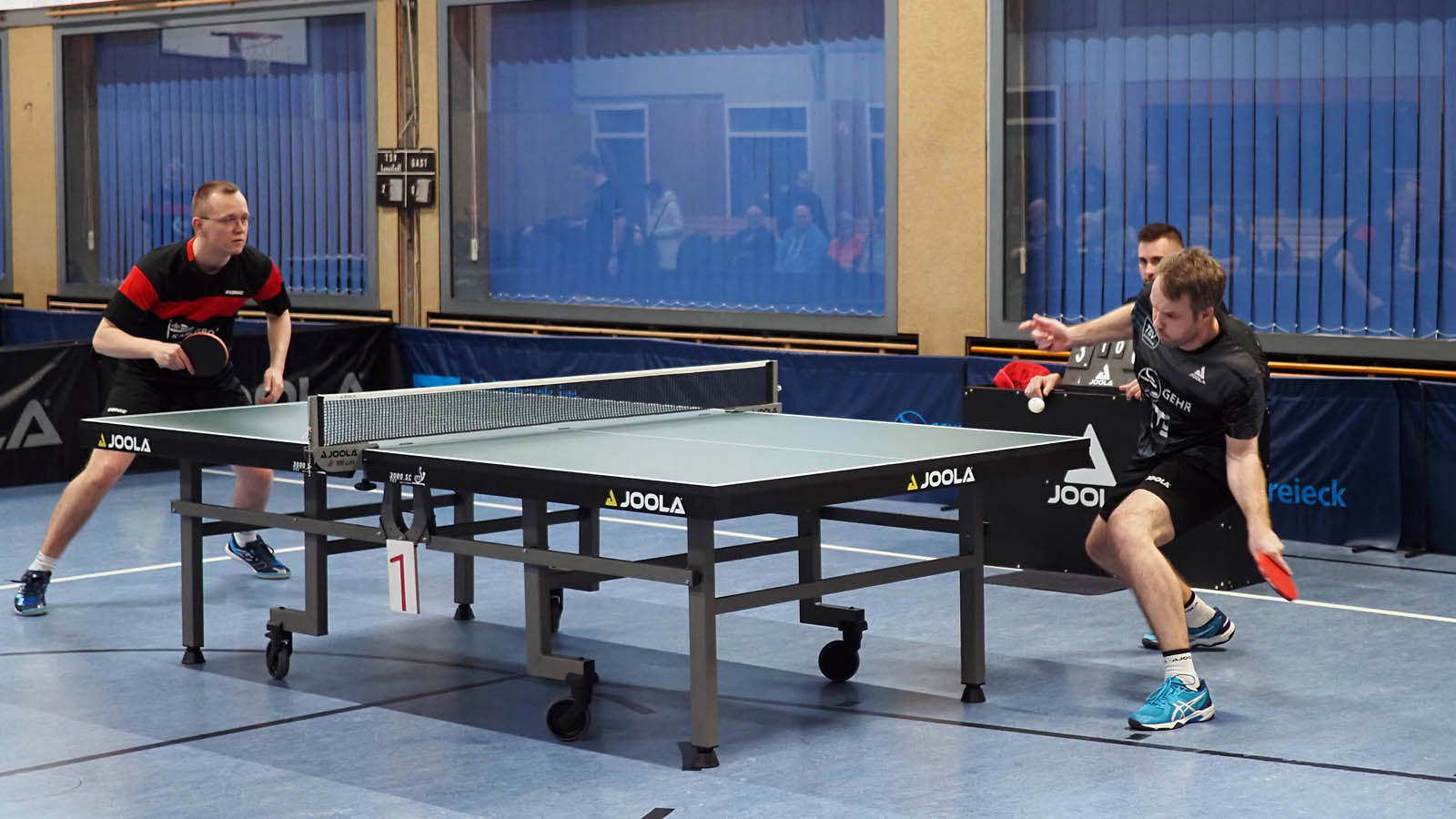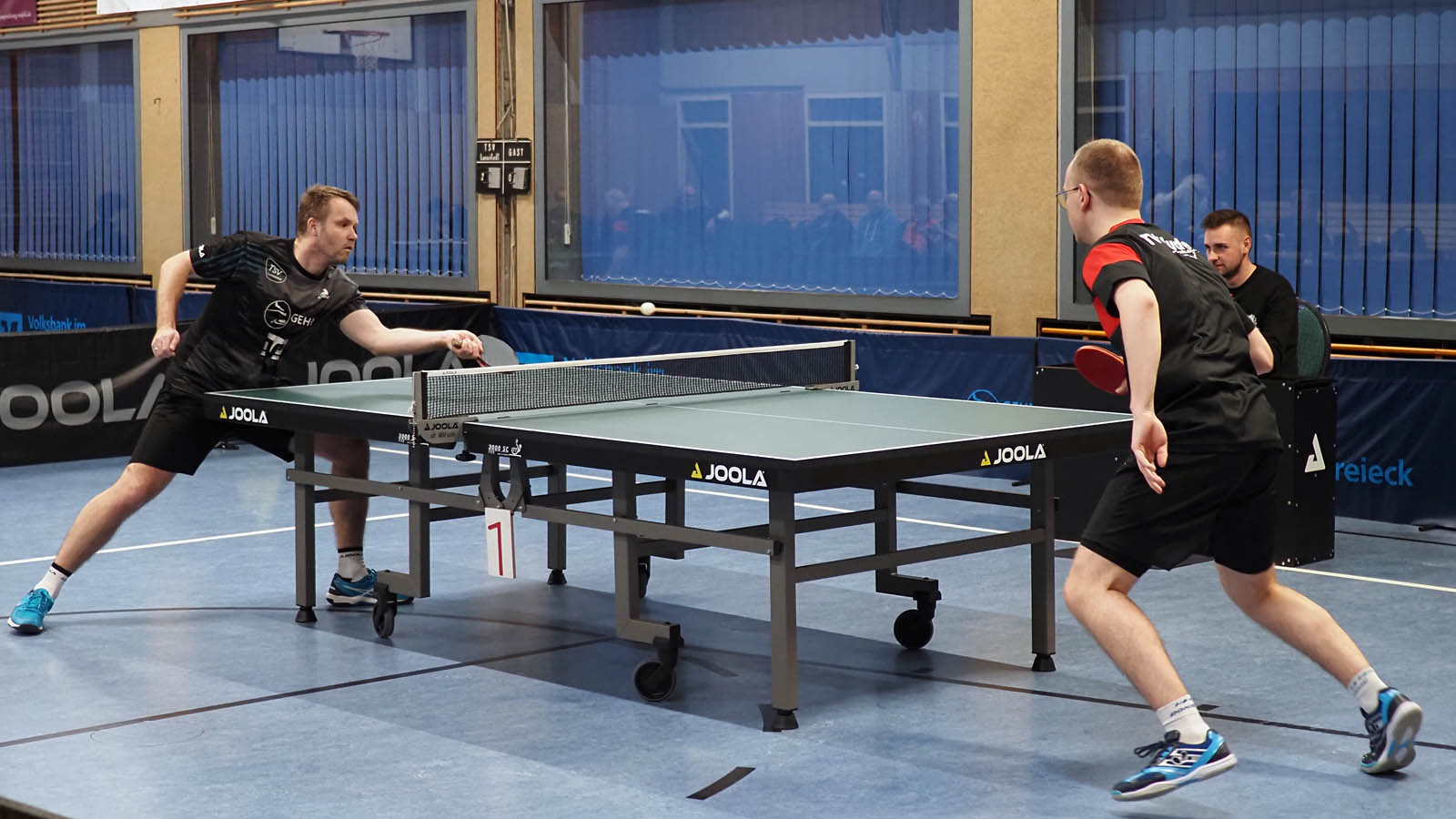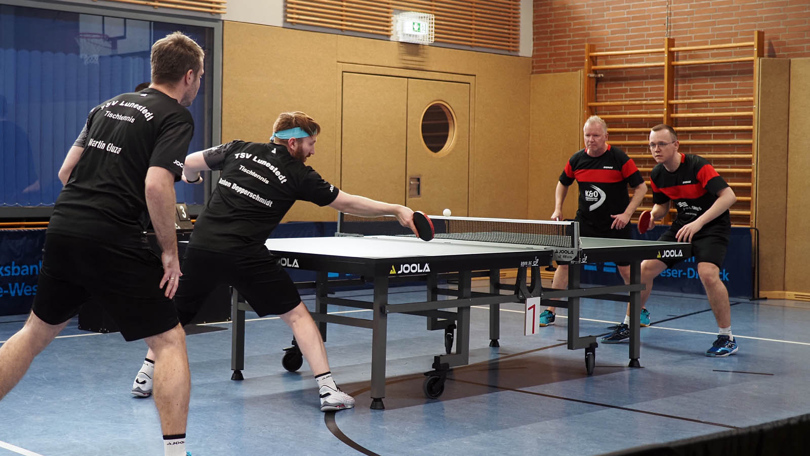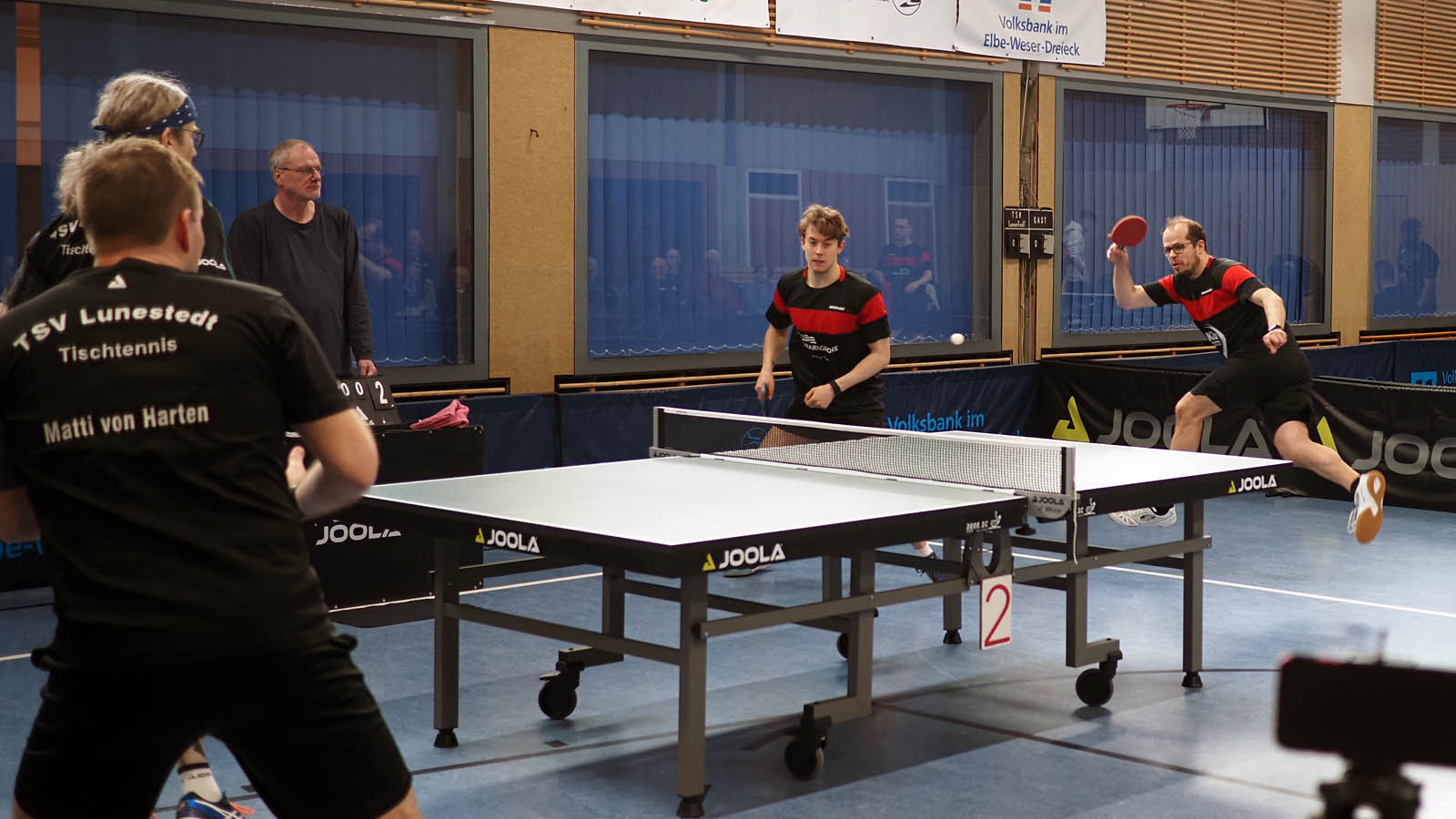 Die Sportfreunde aus Oesede reisten wie gewohnt mit den ersten Viern an und wir zogen das Break gleich in den Doppeln. Elger und ich recht souverän gegen Scholle und Tüpker, Martin und Anton rackerten in einem tollen Spiel Habekost und Hehemann nieder. 2-0 vor 80 Zuschauern.