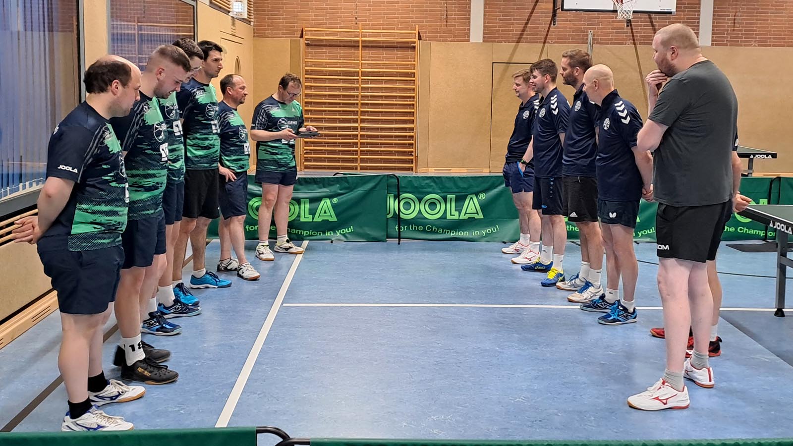 Unsere Gäste konnten nicht aus dem Vollen schöpfen. Martin Dodenhof komplettierte den breiten Kader, während das potentielle obere Paarkreuz aus Jona Voß und Florian Rathmann fehlte. Gemäß den Worten vor und während der Begrüßung scheint der Mittwoch nicht der beliebteste Wochentag unserer Gäste zu sein. Trotzdem wurde sich darauf geeinigt. Nach dem deutlichen  3:9 im