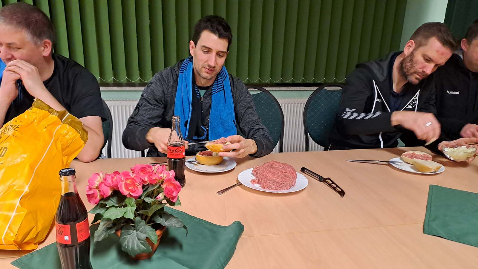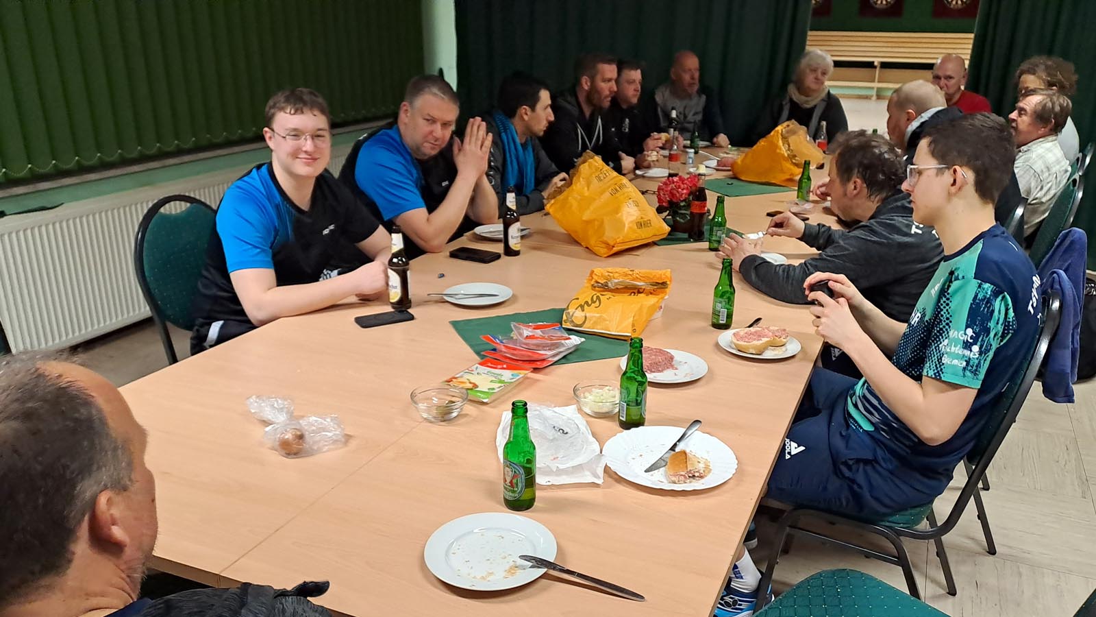 Thorben und Bärchen (schöne Grüße nach Fredenbeck) verpassten die 2:0-Satzführung hauchdünn und unterlagen 1:3 und am Nebentisch mogelten sich Tiger und ich drei Mal knapp durch zum 3:1.