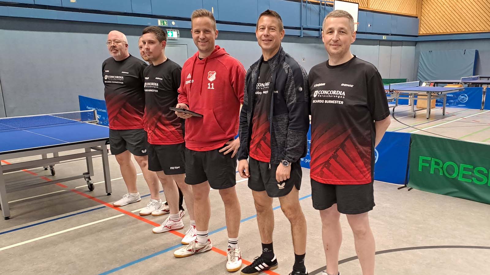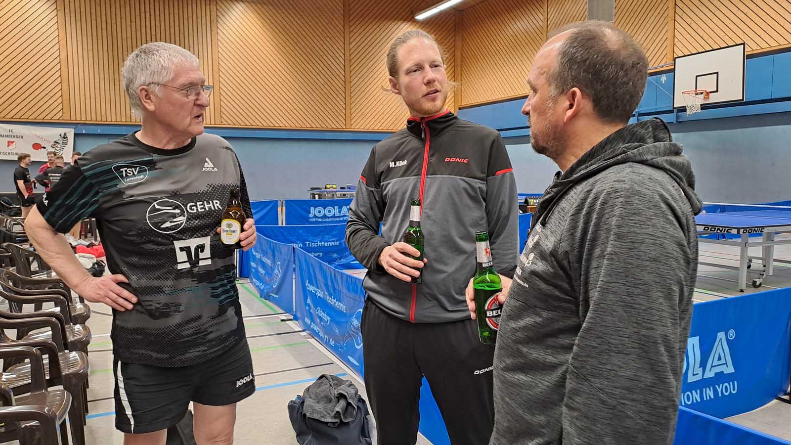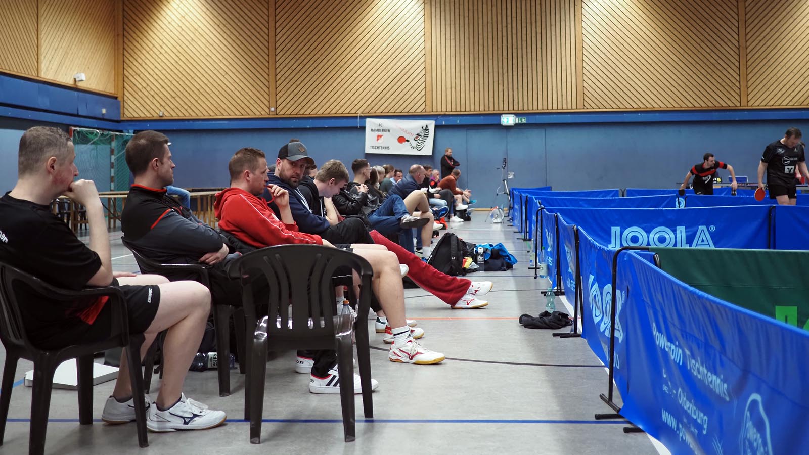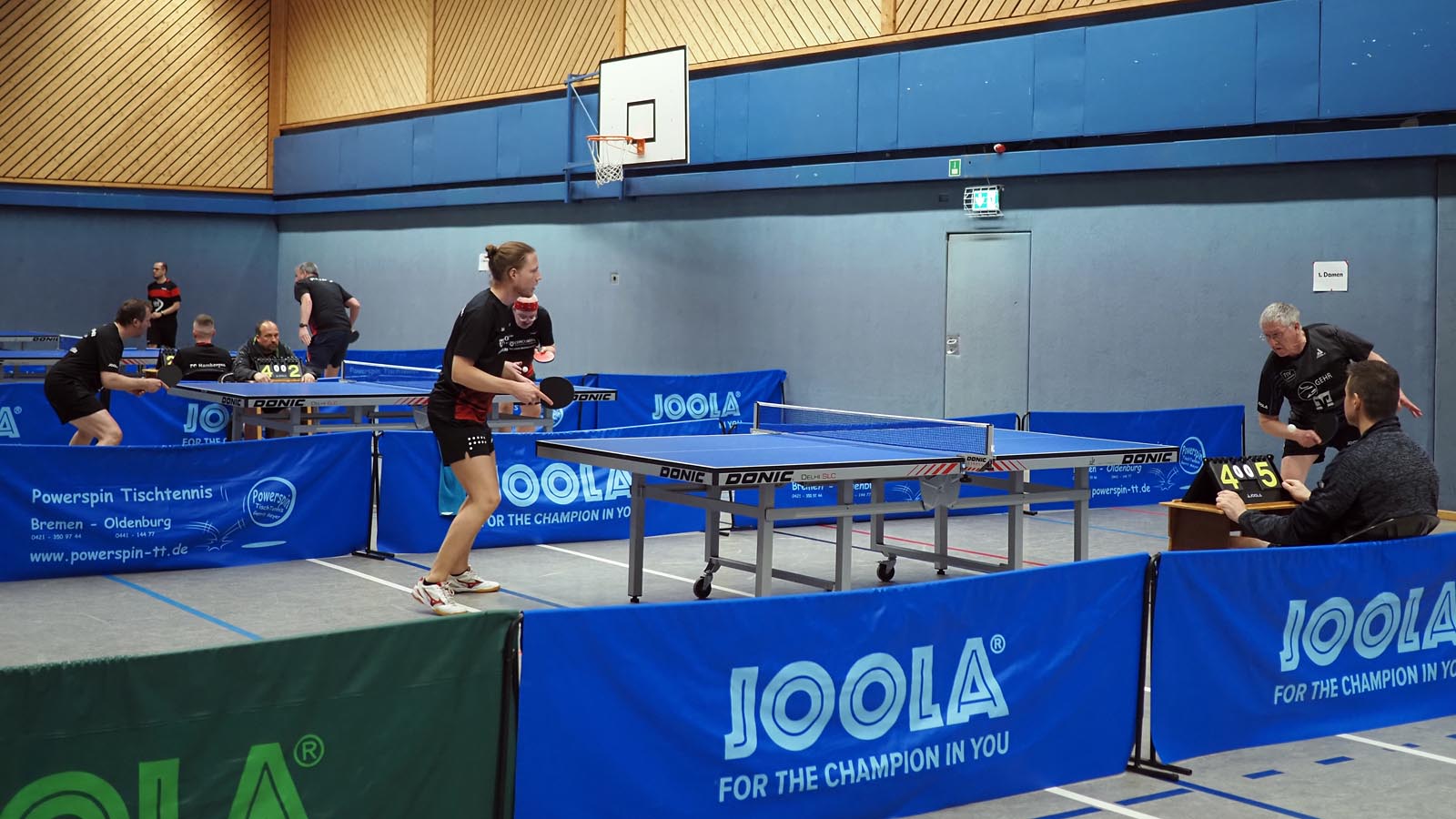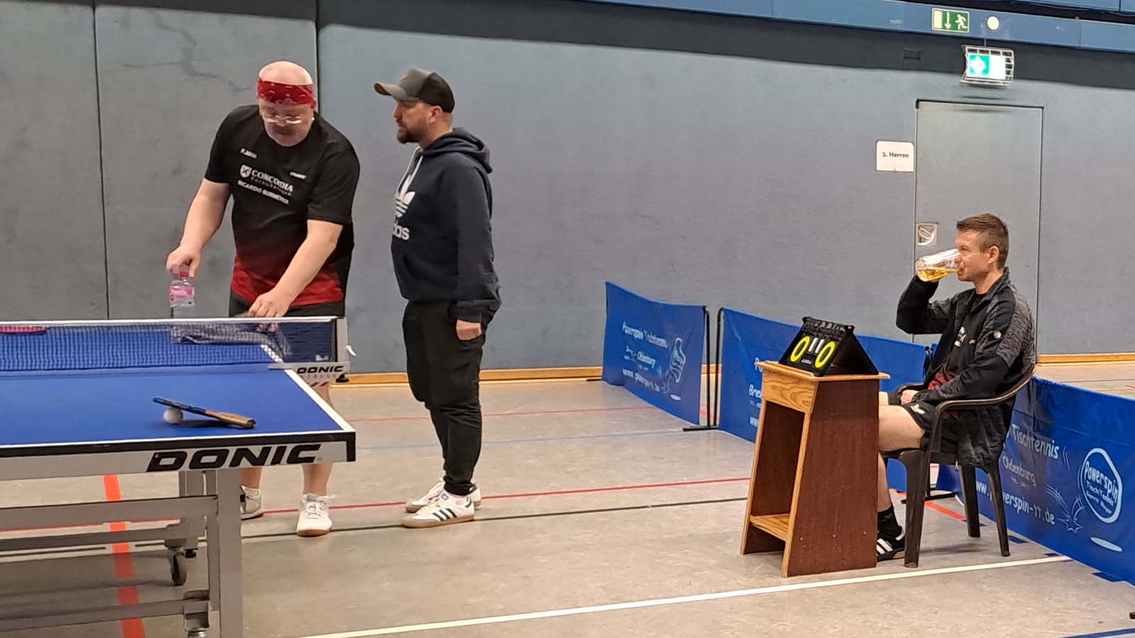In der ersten Einzelrunde musste sich Thorben einem stark aufspielenden Mogalle geschlagen geben, welchen er in der Hinrunde im unteren PK der Verbandsliga noch geschlagen hatte (1:3). Ich zeigte im Anschluss einmal mehr, dass ich nicht der Blindeste gegen Material bin und hielt Schledes Stör-/Schussspiel in Schach (3:0). Auf ähnliche Art und Weise unterstrich Arne gegen Grotjohann, dass in Fünfsatzspielen mit ihm zu rechnen ist und er wie so oft noch einen Trumpf aus seinem imaginären Zauberhut ziehen kann (3:2 nach 0:2). Tiger ließ gegen Krüger erkennen, dass er häufiger mit (einem) Linkshänder(n) trainiert und ließ beim 3:0 wenig anbrennen. Ronald hingegen tat sich gegen die kurze Noppe von Jahic schwer und blieb beim 0:3 in jedem Satz ein wenig unter seinen spielerischen Möglichkeiten. Rü zeigte sich unter aufgeregtem Blick von Sohnemann Uwe mal wieder in bester Lauflaune und bewältigte gegen Kück gefühlt die ersten 10 km im Abwehrgang. Leider war bis auf einen Satzgewinn noch kein Zieleinlauf in Sicht, weshalb es beim 1:3 bleiben sollte.