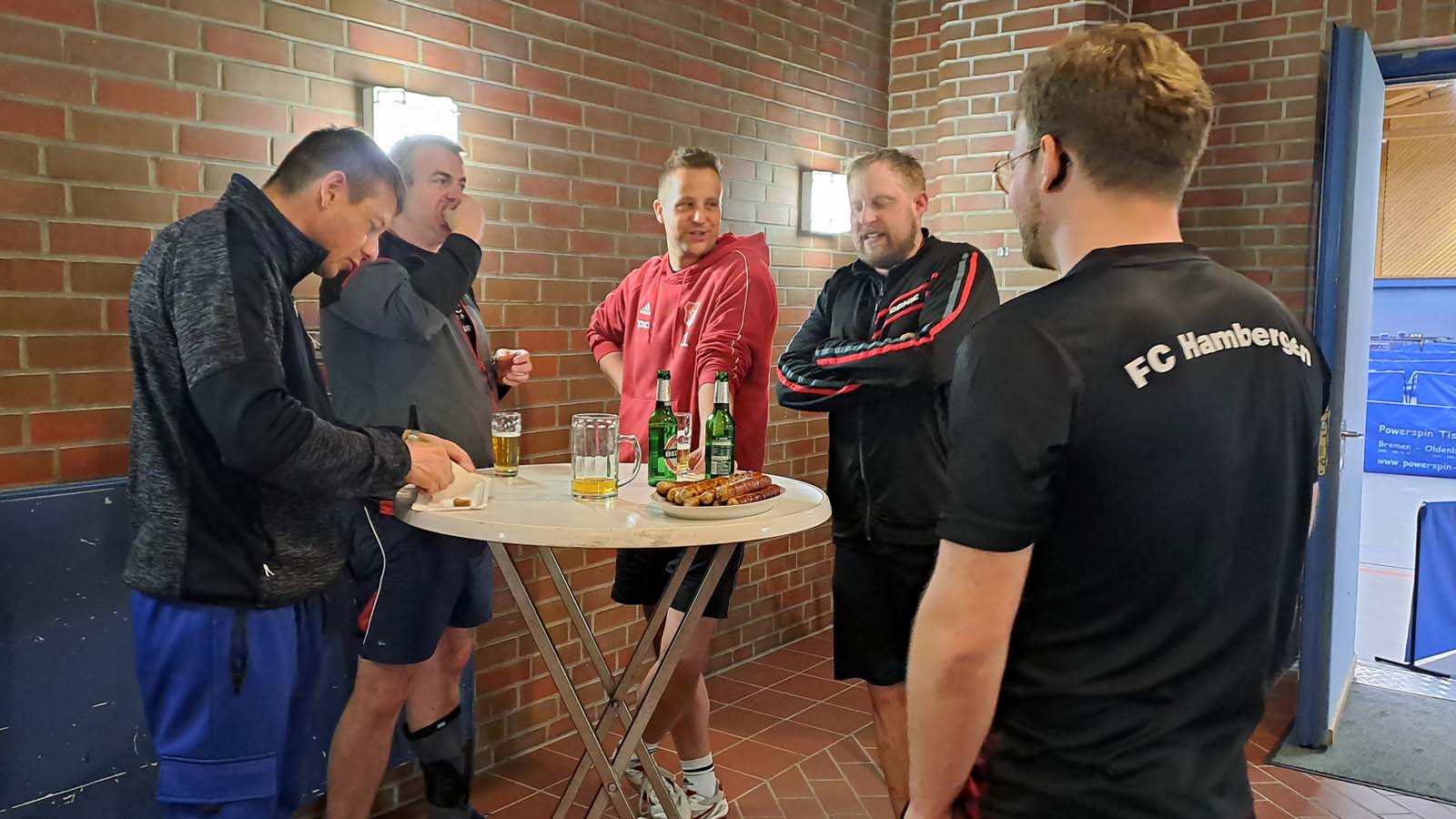 Im Anschluss des aus Hambergener Sicht unfassbar unglücklichen Abends (beide Spiele wurden 7:9 verloren), gab es, wie mittlerweile schon gewohnt, eine schöne Schaumparty, die vom Capitano und dessen schier unermüdlichen Vorrat an Shampoo gesponsert wurde.