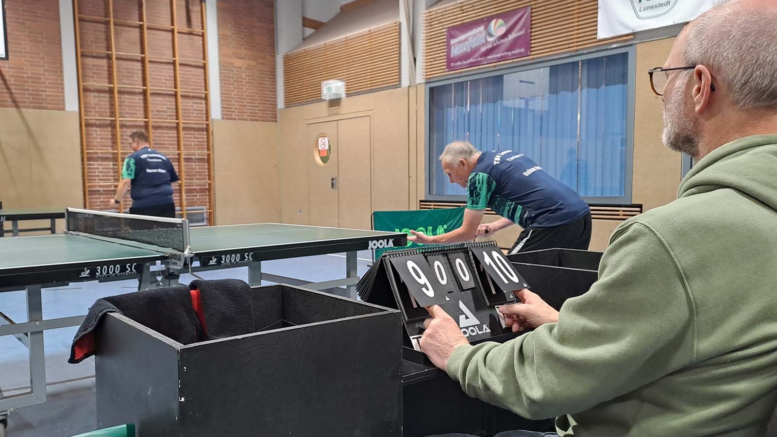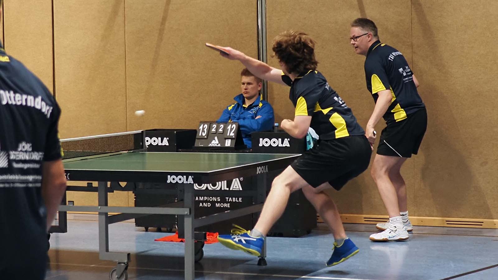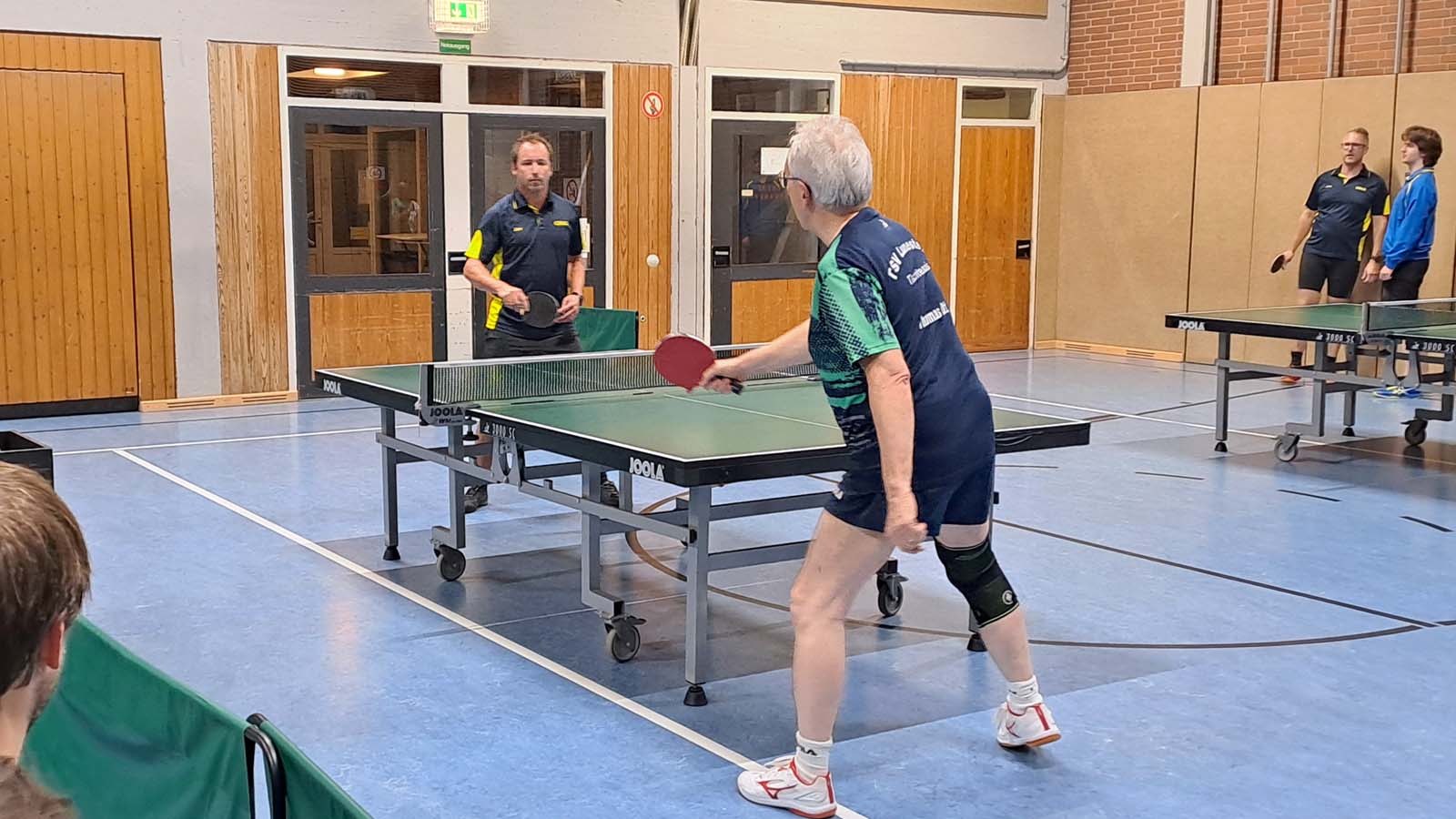Unser Paradedoppel 1 mit Volkmar und Hanno zeigte Comeback Qualitäten und drehten einen 6:10-Rückstand im Fünften in einen verheißungsvollen 14:12-Startsieg. Leider konnten unsere beiden anderen Doppel nicht nachlegen...