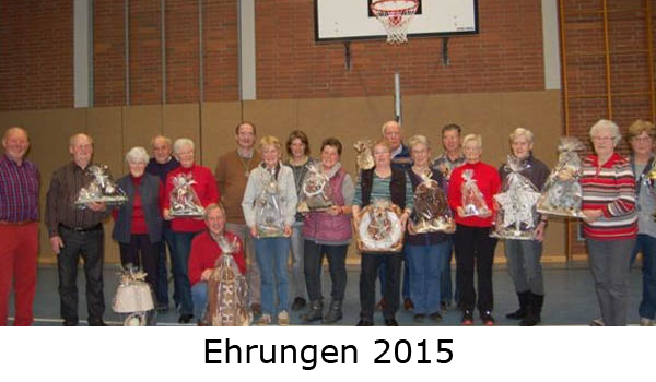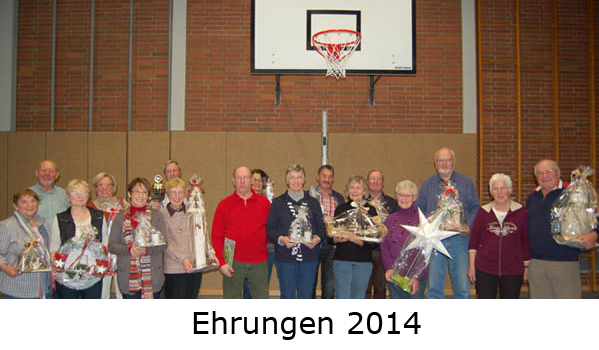 Im Mehrzweckraum der Turnhalle nahmen nach einer 7 km langen Wanderung 77 Teilnehmer ihre Plätze an weihnachtlich geschmückten Tischen ein und genossen Kaffee und Kuchen. Auf dem Programm stand die Verabschiedung des Wanderwartes Manfred Röper und die Wahl des Nachfolgers. Zuvor fanden die Ehrungen für Wander/Innen bezüglich deren gewanderten Kilometern statt.Manfred Röper wurde für 2000 km, die er im Laufe der Jahre gewandert ist, besonders ausgezeichnet. Alle Geehrten bekamen Geschenke überreicht.