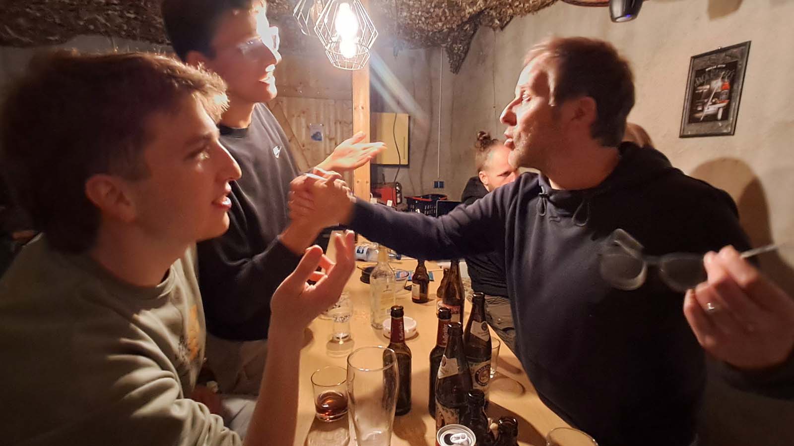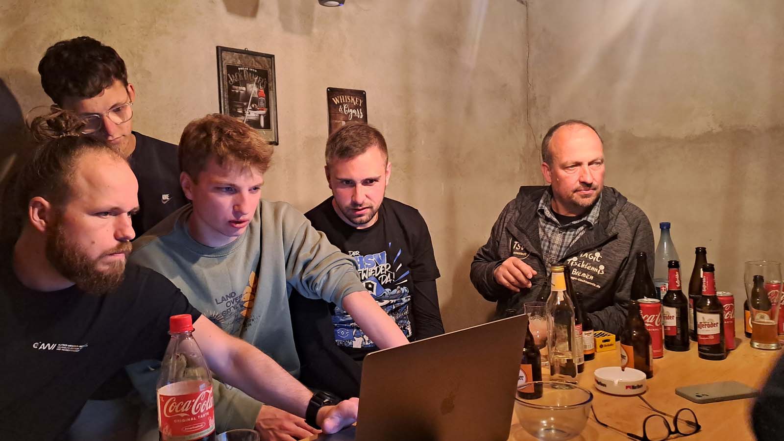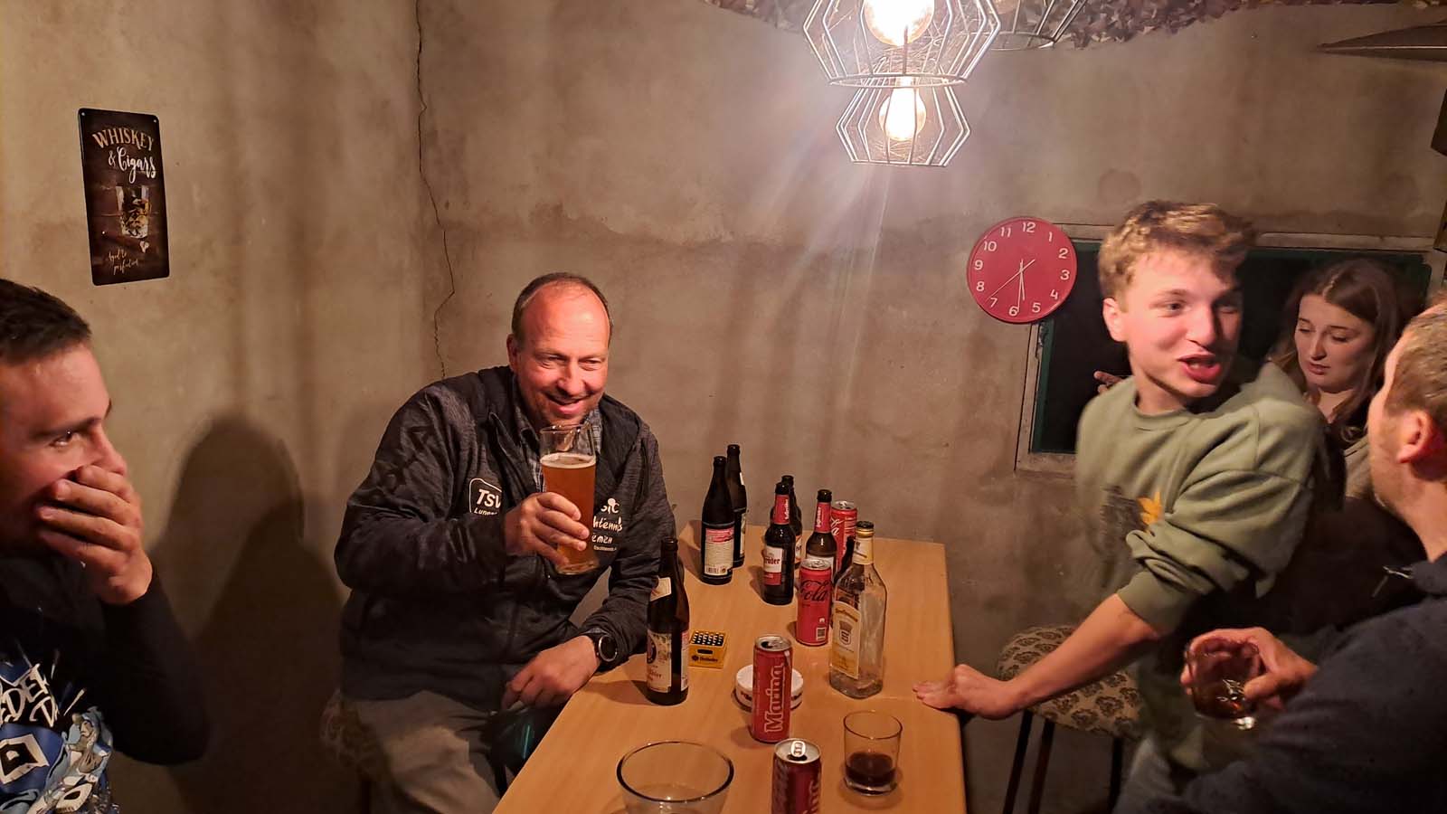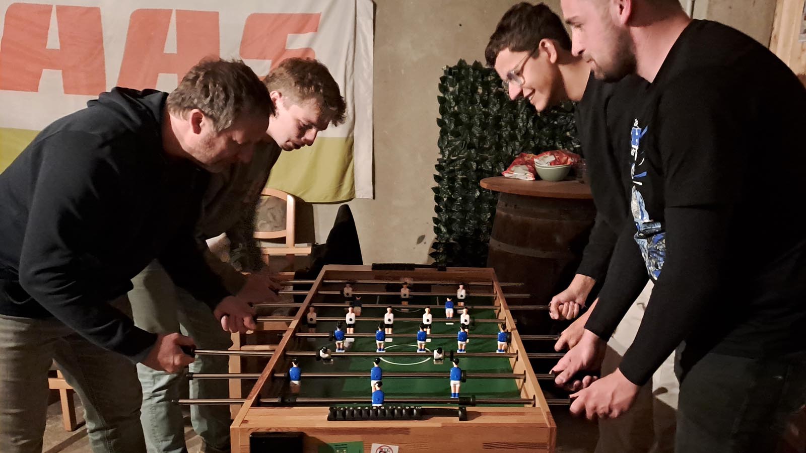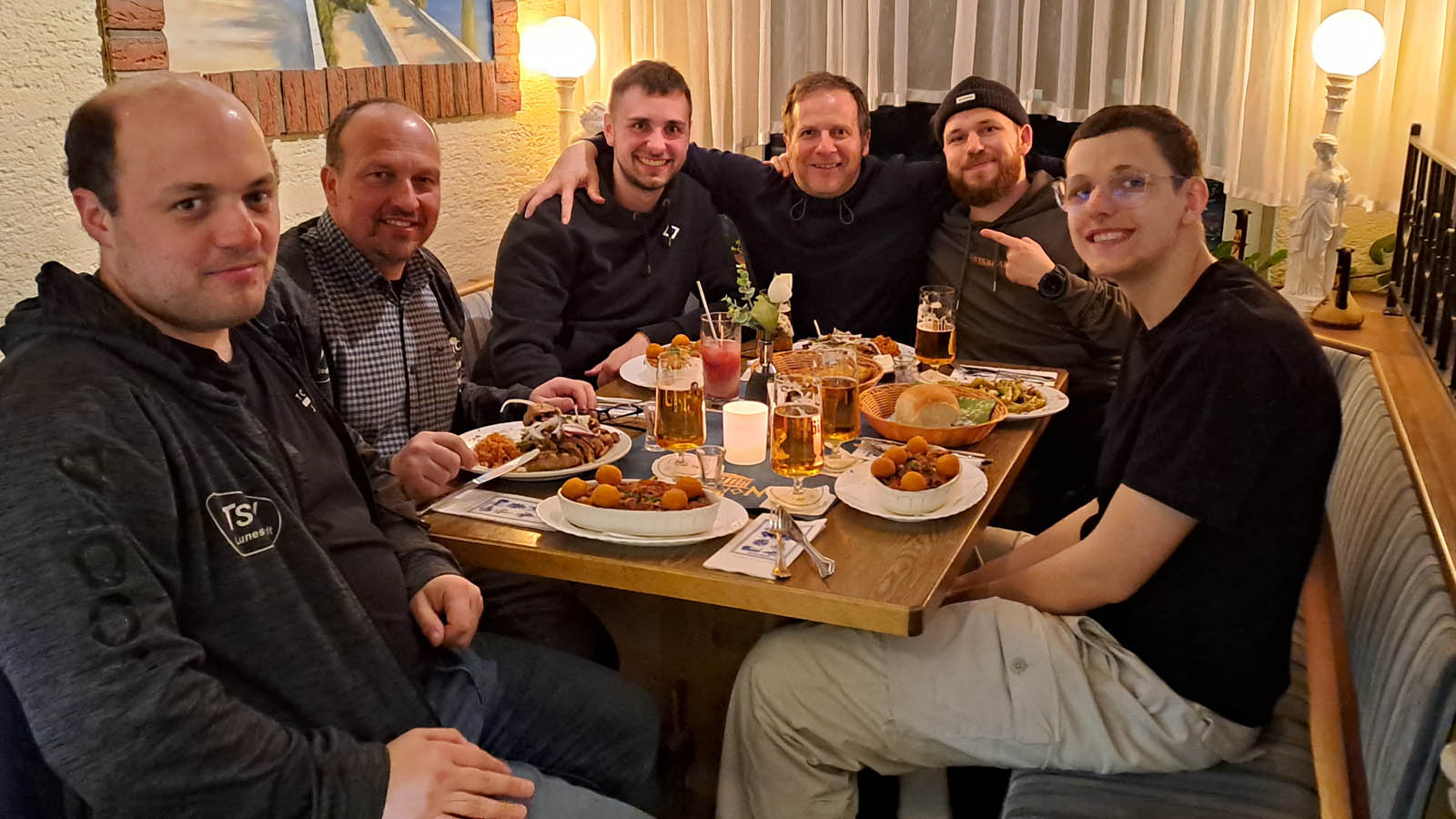 Als krönenden Abschluss trafen wir uns Ende Mai im Rahmen einer vorerst letzten Mannschaftsfeier und fingen hierbei die Essenz der vergangenen zwei Jahre recht gut ein. Ich kam von Helgoland, wenngleich mal wieder eine Fähre ausfiel. Loocki holte mich ab und fuhr emsig von Cuxhaven nach Lunestedt. Der Rest der Bande durchlief einen Dreikampf, bestehend aus Radeln, Tischtennis und Bierpause, welcher uns schließlich alle beim Griechen und der dazugehörigen „Ouzoshower“ des Capitanos vereinte. Tiger öffnete den Partyraum und lud zum Absacker samt Tischkickershowdown. Ich verpasste meinen letzten Zug, und den Rest kann sich jeder selbst denken. 😇