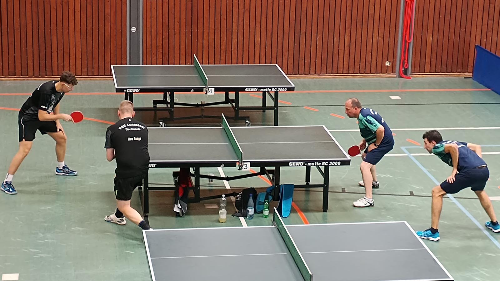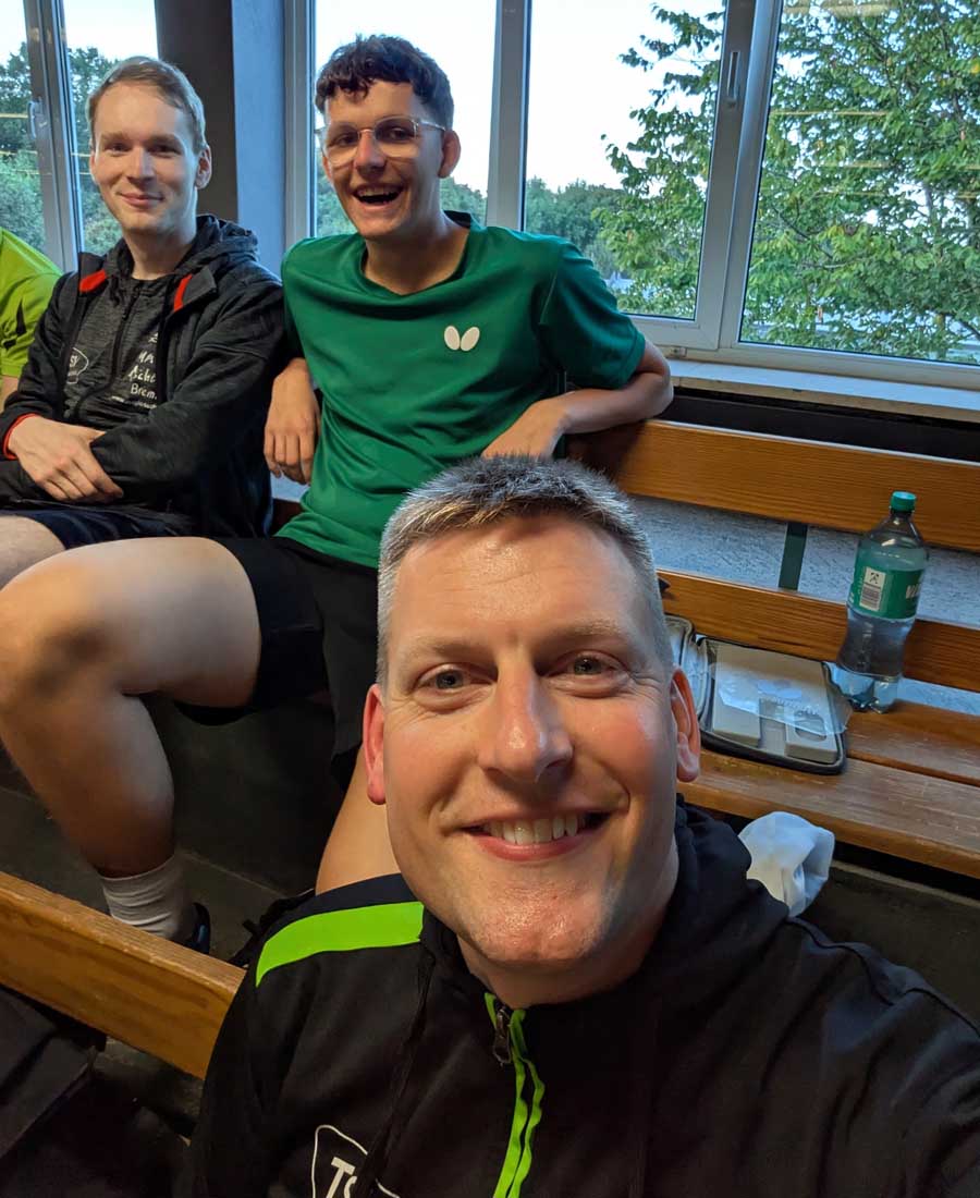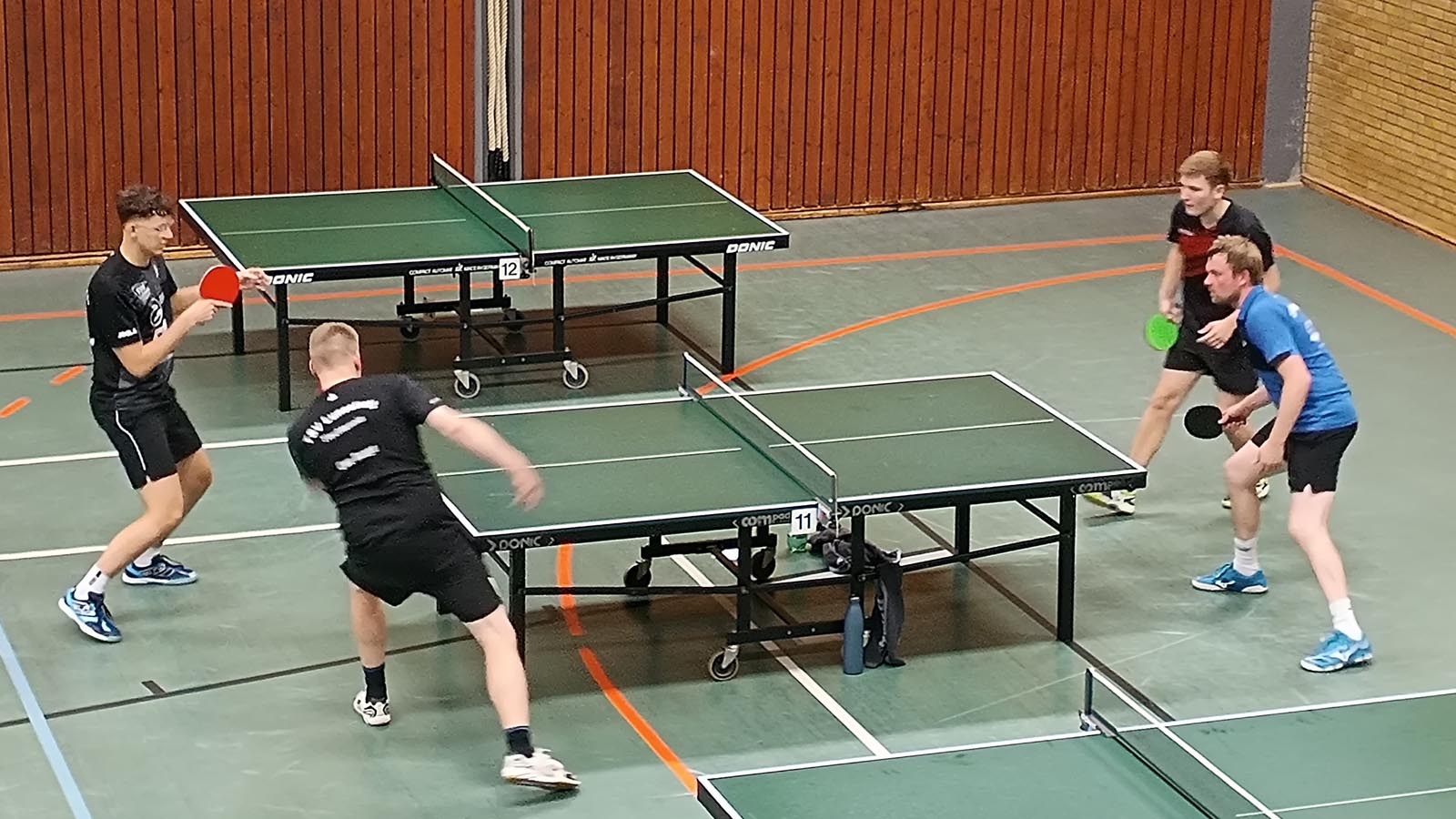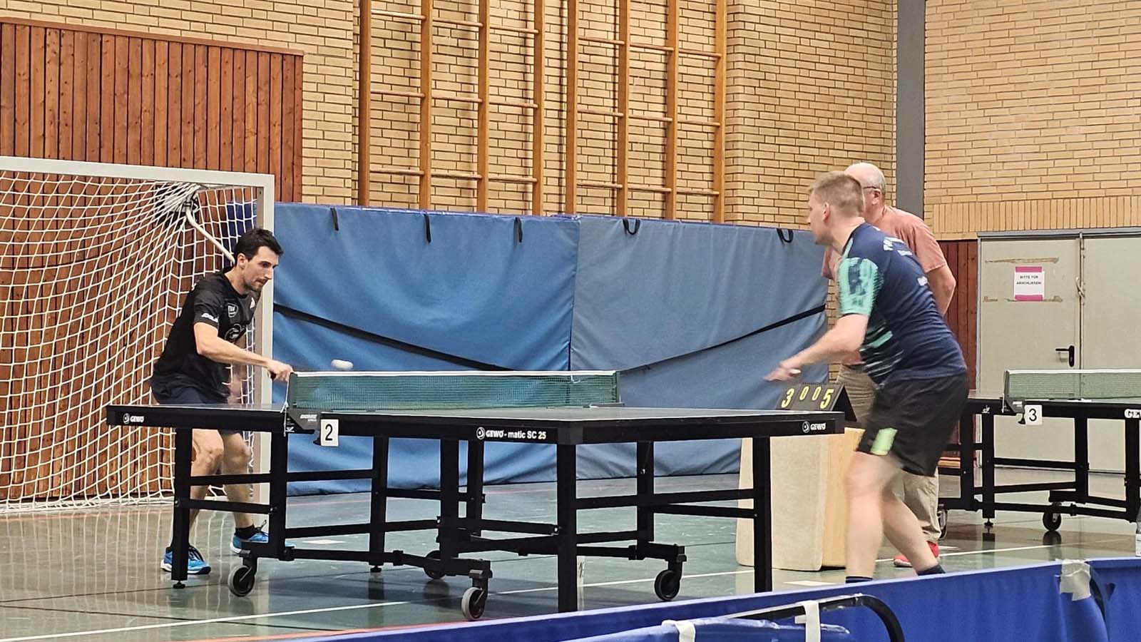 Uwe ließ gegen Kai nichts anbrennen und revanchierte sich mit einem klaren 3:0 für die Niederlage unserer Schnurrkatze aus Heerstedt. Matze hingegen lag gegen Völschow schnell 0:2 hinten – eigentlich schien alles entschieden. Doch Matze zeigte, warum wir ihn an der 4. Position in der Verbandsliga meldeten, und drehte das Spiel noch zum 3:2-Sieg!