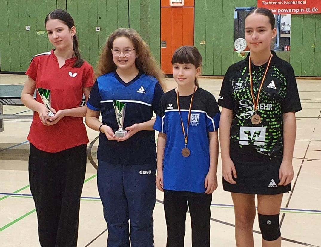 Elisa traf im Viertelfinale auf Lia Sophie Busch (TSV Thedinghausen), gegen die sie bei der Bezirksrangliste kürzlich noch verlor. Es gelang die Revanche und Elisa zog mit 3:2 ins Halbfinale ein, wo sie mit 2:3 an der Lokalmatadorin und späteren Bezirksmeisterin Adelina Schmidke (TTC Drochtersen) scheiterte und schließlich den dritten Platz belegte.