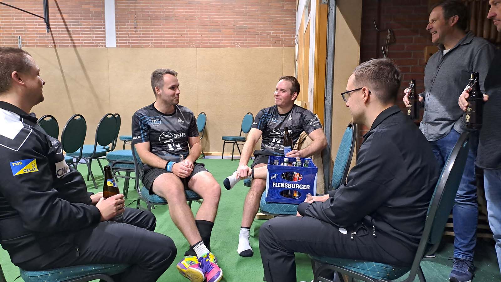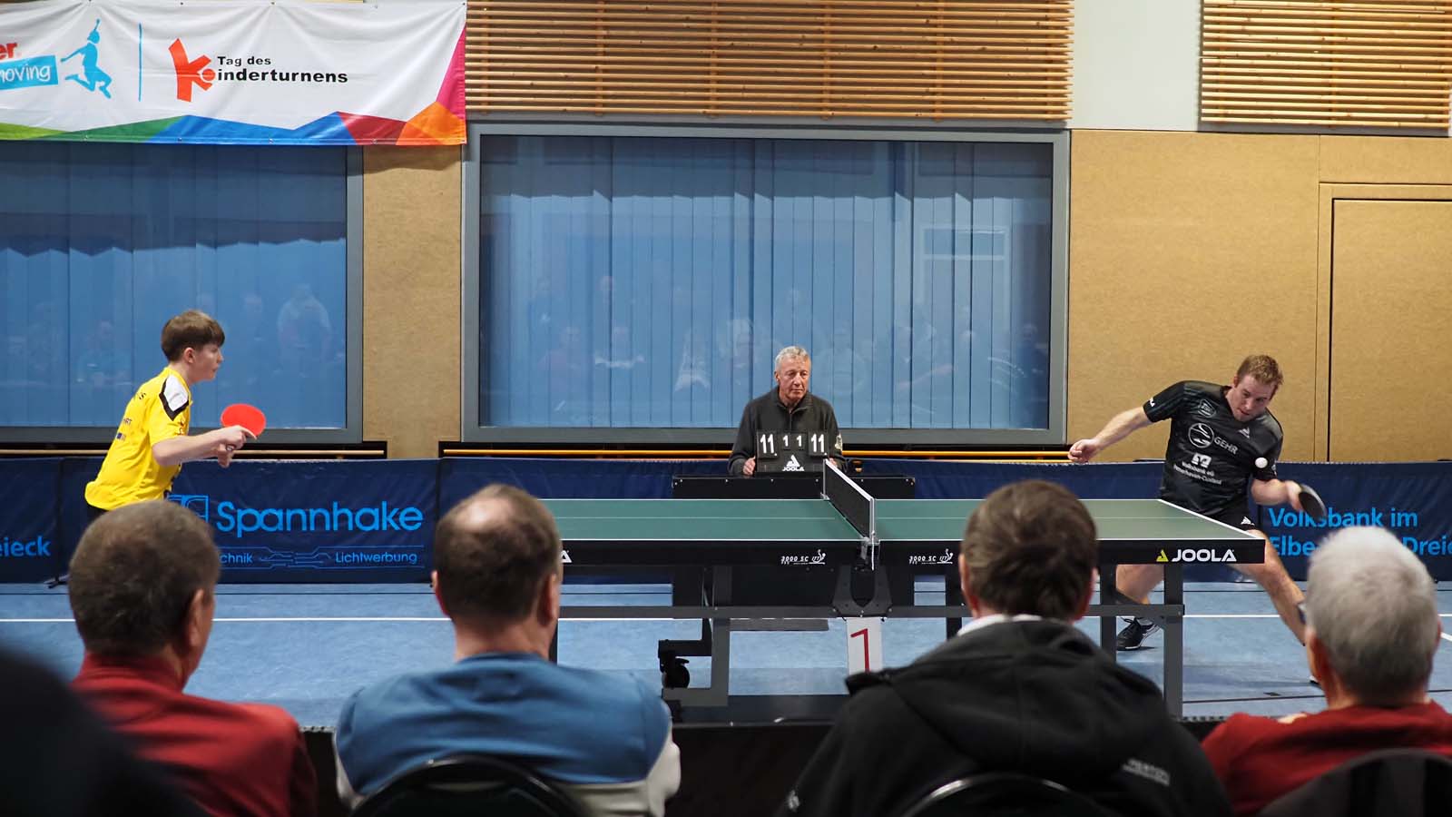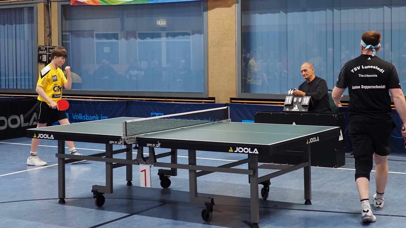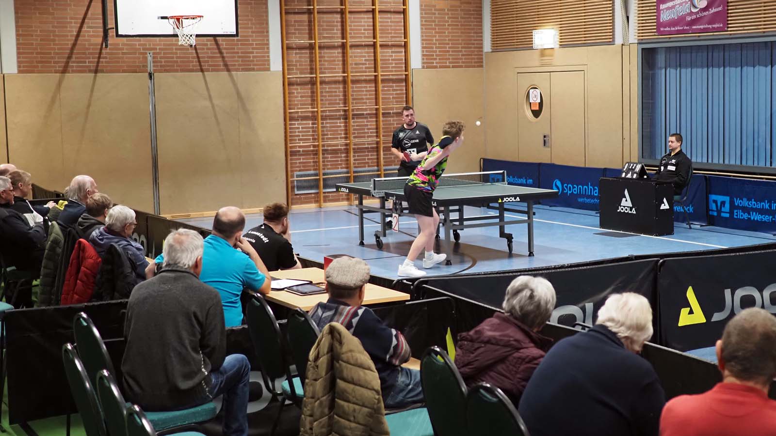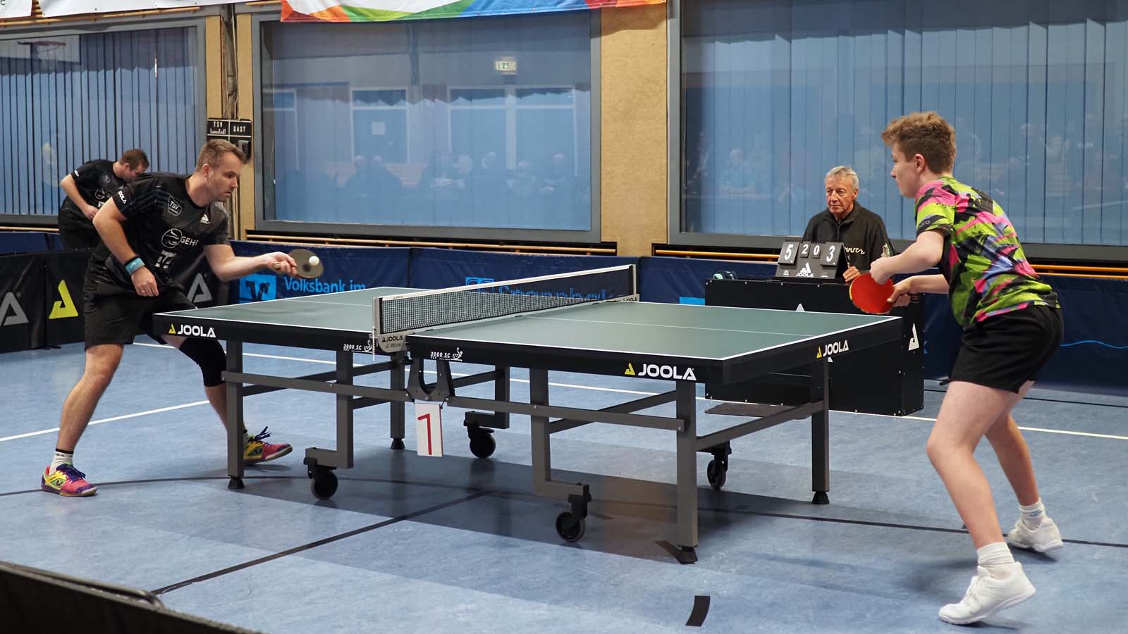 Anton biss sich anschließend oben nach hoher Führung im Ersten an der sicheren Abwehr von Kassens die Zähne aus. Ich kämpfte mich ins Spiel gegen Orhan und hatte nach langen Ballwechseln im Vierten Matchball, aber musste noch in den Fünften um hier nach starker Vorstellung zu gewinnen. 3-1.