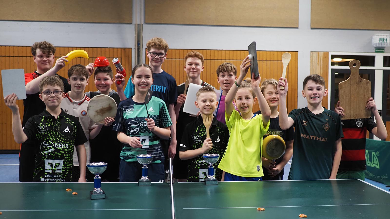 Die Tischtennisschläger blieben beim letzten Jugendtraining vor Weihnachten wie gehabt in den Taschen und wurden durch mehr oder weniger taugliche Küchengeräte ersetzt. Nach dem