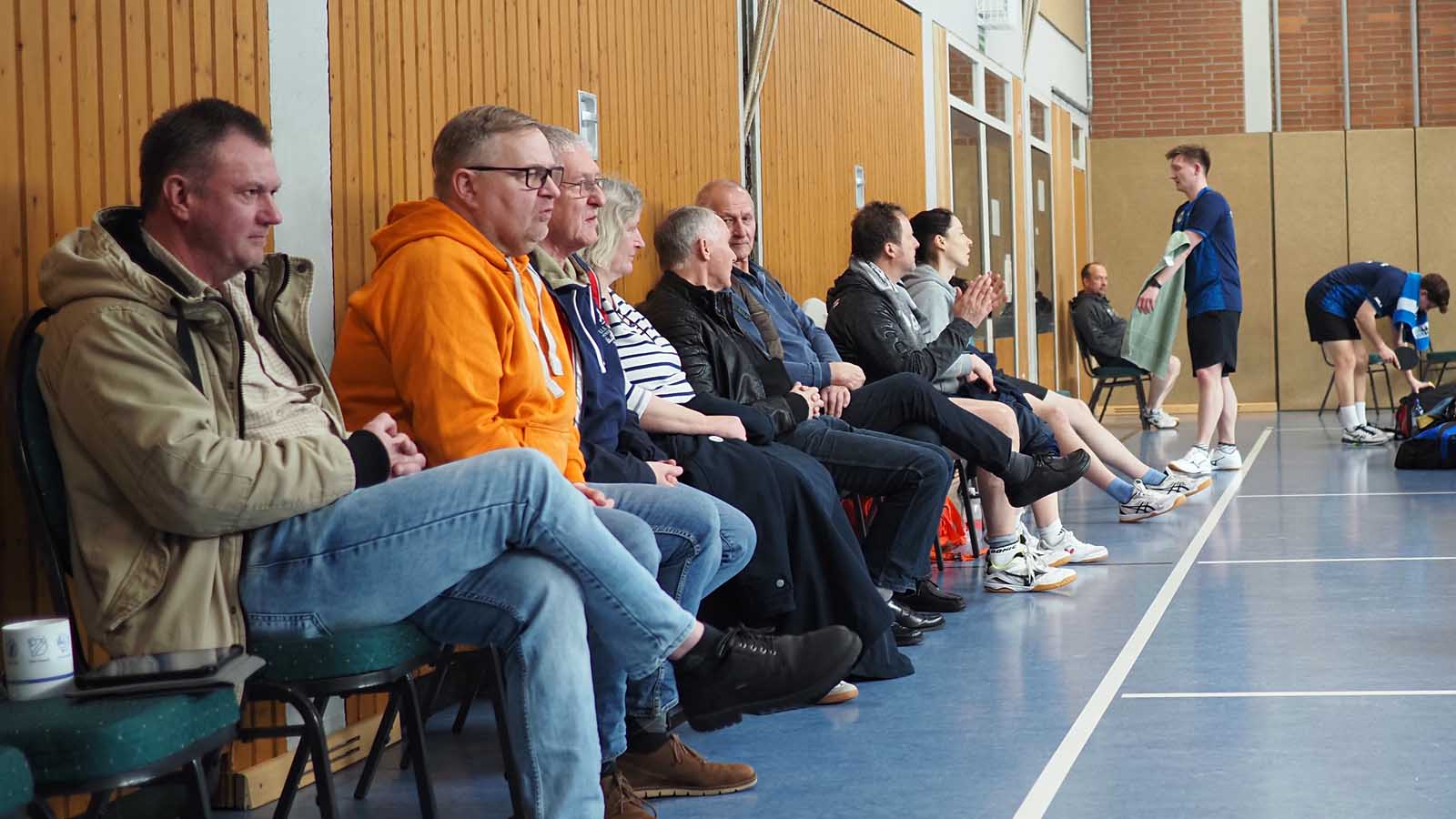 Die sympathischen Gäste kamen nach dem Spiel bei Kaltgetränken, Kuchen und Keksen ins Grübeln, ob man Kapitän Gerrit bzw. seiner mittelmotivierten Ansprache bei der Begrüßung eventuell eine gewisse Teilschuld am Ergebnis geben könnte. Außerdem gab es noch Optimierungsideen zu dem tags zuvor in Dissen erspähten fahrbaren Kühlschrank: Wenn dieser wie ein Saugroboter autonom durch die Hallen fahren könnte, könnte er immer zu Tiger fahren.