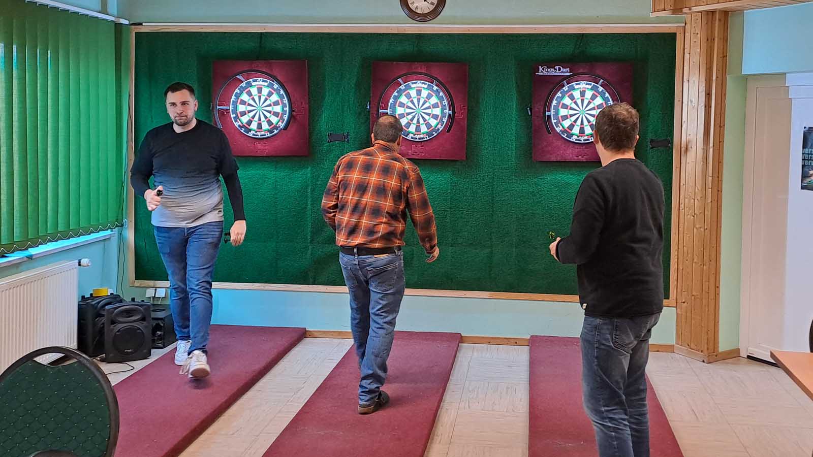 12 Uhr Anpfiff und 9:1 ist leider nicht so ganz kompatibel mit den Öffnungszeiten unserer griechischen Restaurants. Zur Überbrückung wurde noch gedartet statt gewartet. Dass Loocki das kann wissen wir ja. Aber Tiger hat uns doch etwas überrascht. Er wusste nicht nur Pfeile zu werfen sondern auch mit seinen Pantoffeln wie Gary Anderson vor jeder Aufnahme ans Oche zu treten.