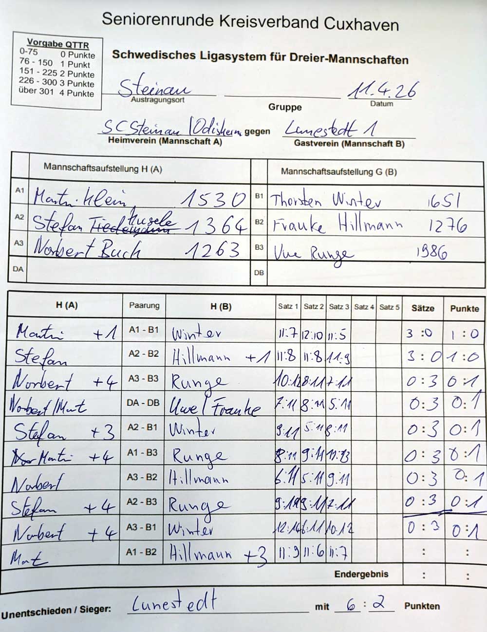 Seniorenrunde: SC Steinau/Odisheim - TSV Lunestedt 2:6