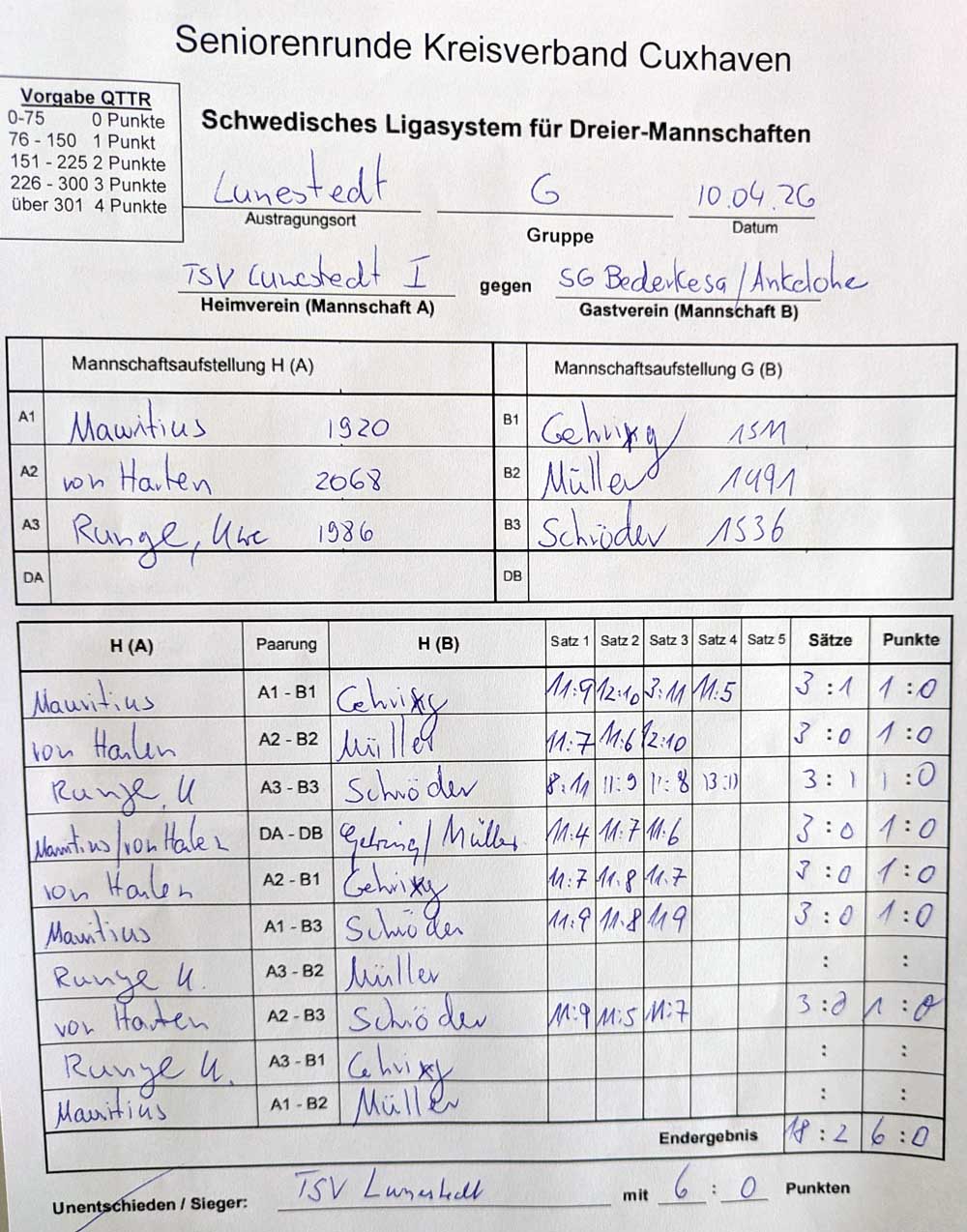 Seniorenrunde: TSV Lunestedt - SG Bederkesa/Ankelohe 6:0