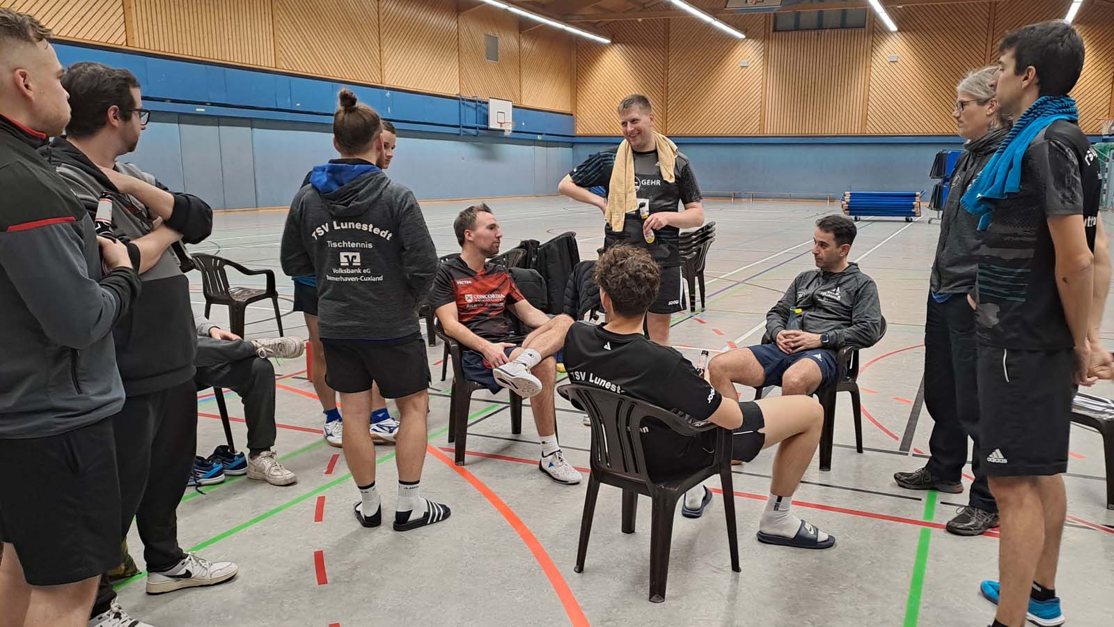 Oben hatte Uwe mit Ausnahme des ersten Satzes nur bedingt die Möglichkeit Akzente gegen Barghorn zu setzen und verlor daher in der Folge in drei glatten Sätzen. Ich zeigte gegen Schmitt ein durchaus solides Spiel, vermochte es jedoch nicht, eine 7:3-Führung im dritten Satz einzutüten, und verlor daher etwas unnötig im Entscheidungssatz (2:3). Matze zauberte nach Startschwierigkeiten im ersten Satz eine flotte Nummer auf den Lunestedter Mehrzweckboden und siegte in vier Sätzen gegen Meißner (3:1). Ebenso von Startschwierigkeiten geplagt war Thorben, welcher zu schnell einem 0:2-Rückstand gegen Schoppe hinterherrennen musste, bevor er sich wieder in die Partie kämpfte, nur um dann undankenswerterweise auch das Nachsehen im Decider zu haben (2:3). Luca bot beim Spiel gegen Krüger ein ähnliches Bild wie schon bei seinem Duell mit dessen Bruder. Im offenen Spiel eigentlich der bessere Mann am Tisch, machten schlussendlich kleine Defizite im Aufschlag-/Rückschlag-Spiel den entscheidenden Unterschied, der schlussendlich in einer 1:3-Niederlage münden sollte. Julia hingegen schien da weiterzumachen, wo sie in der Vorwoche aufgehört hatte, und schlug Stüber teilweise mit dessen eigenen Waffen, bestehend aus cleveren Platzierungen und Tempowechseln, und stellte somit zur Halbzeit mit ihrem 3:1-Erfolg auf den 4:5-Zwischenstand.