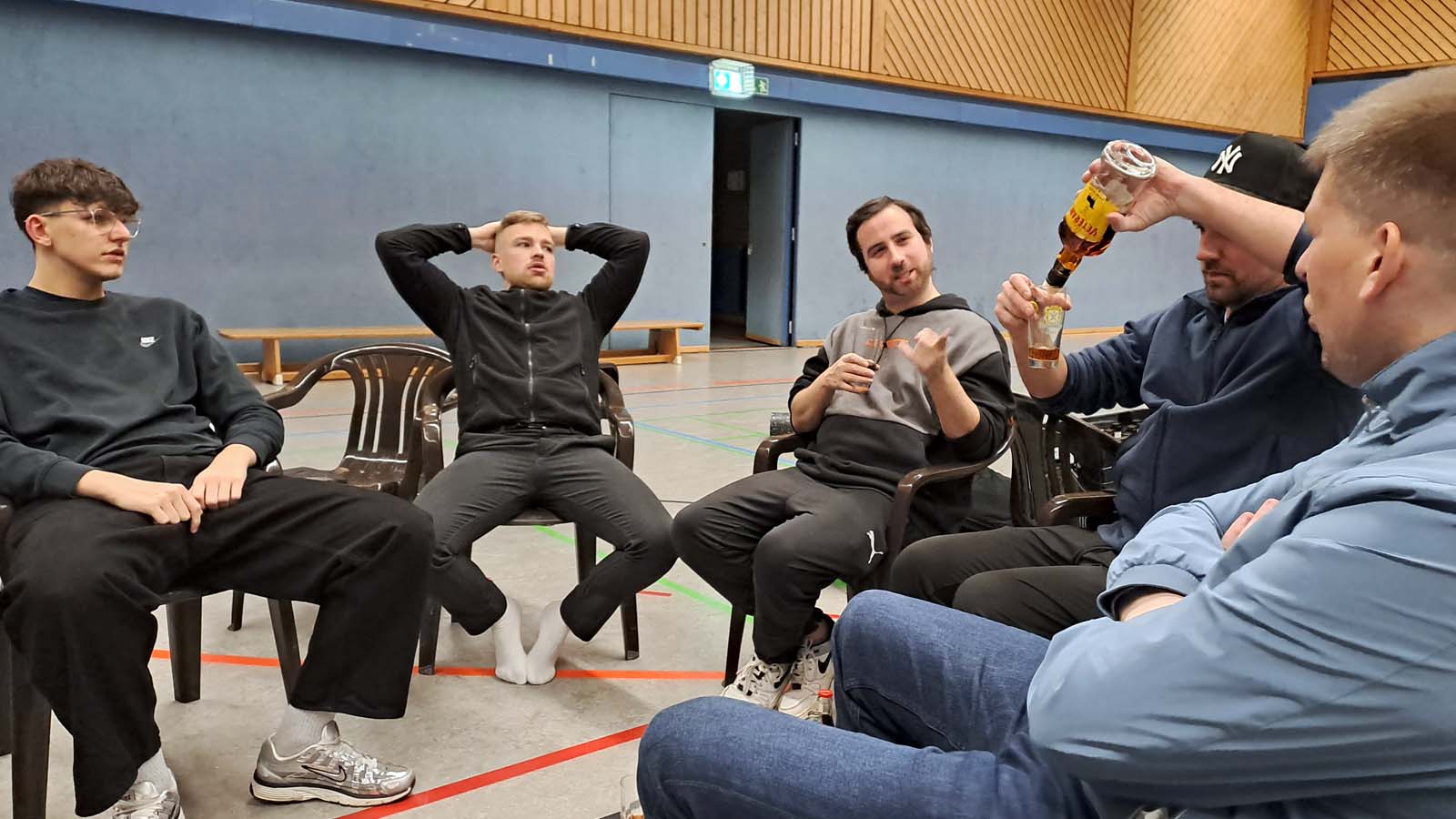 Ebenso hoch anrechnen muss man unseren Gastgebern jedoch auch deren enorme Gastfreundlichkeit, die trotz der Trübung durch ihre bittere Niederlage für reichlich Speis und Trank sorgten und mit uns noch eine gute Weile in der Halle verharrten. Zu unserem Glück lang genug, bis Loocki mit dem Vereinsbus noch unverhoffterweise die nötige Infrastruktur herstellen konnte, um Arne, Uwe, Elger und mich zum Oldenbüttler Bahnhof zu befördern, an dem zwar kein Zug, jedoch der Arne und mir bereits bestens bekannte „Fahrende Ritter“ nach Bremen auf uns warten sollte.